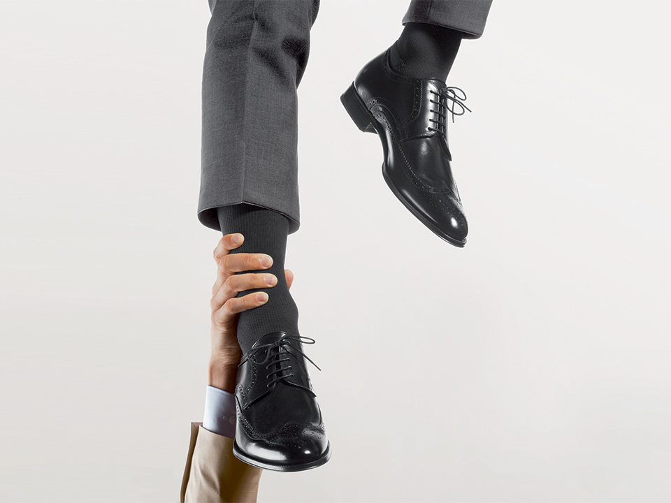1. Nogavico primite na zgornjem robu in jih povlecite navzdol proti peti.